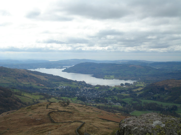 Looking down Nab Scar to Rydal and Ambleside