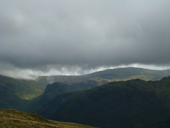 A sunny Glaramara peaks out from below the low cloud