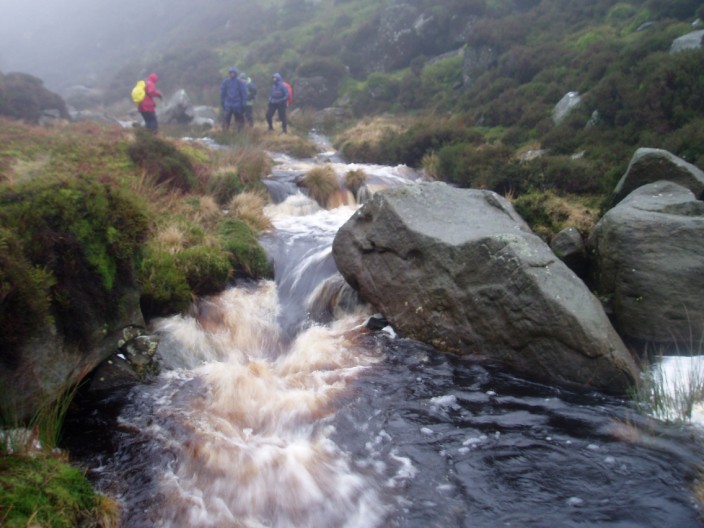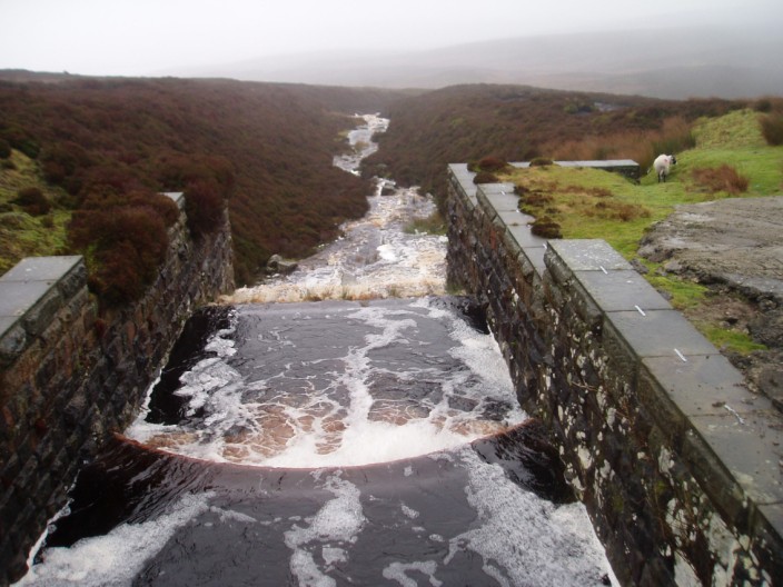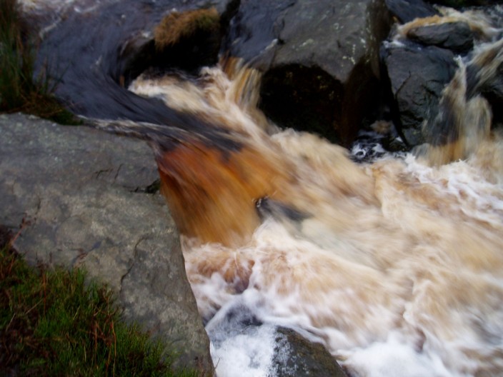 The swollen waters rushing down from the moor . . .
