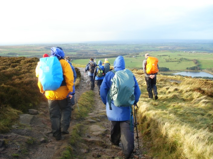 | Comments: | Setting out alongside the Goit we were pleased not to walking in the quagmire created by contractors vehicles on the opposite side. A good path took us through Wheelton Plantation before heading up onto Wheelton Moor. The conditions underfoot remained damp, to say the least, as we made our way through tussocky grass and across to the A675. We quickly left the road to cross a field and head into Tockholes Plantations on our way to Roddlesworth Reservoirs. Examining the fast flowing water in the weir we then took advantage of the reservoir walls to stop for a morning coffee. A short climb took us up to a minor road from which we joined part of the Witton Weavers Way. This led into Sunnyhurst Wood and after passing the bandstand we turned off the main path to exit the woods via the Lych Gate. A climb then took us up to Jubilee Tower, also known as Darwen Tower. After exploring the various viewing levels within the Tower we made our way across Darwen Moor to Slipper Lowe car park - where they now charge a fee for parking! A short stroll took us down to the ruins of Hollinshead Hall where we stopped to eat lunch. After another short stretch on the A675 we started the last climb of the day, to Great Hill. The route is in serious need of attention with a wide band of flattened boggy ground stretching up the hillside. Similarly part of the descent route to White Coppice is seriously rutted and muddy, due largely to mountain bikes using this route. Hopefully something will be done to stop the erosion in the not too distant future!!! | ||