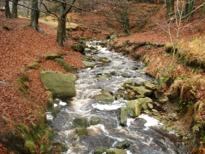A carpet of leaves adorn the banks of Rake Brook