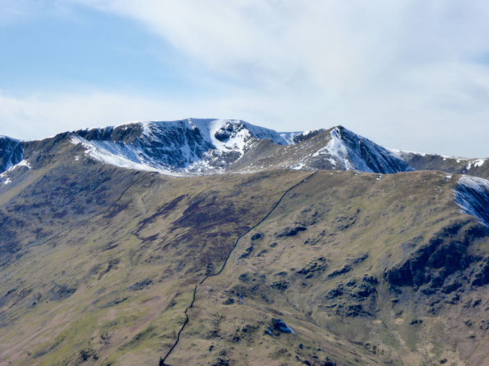Zooming in on Helvellyn with Striding Edge on the left and Swirral Edge on the right