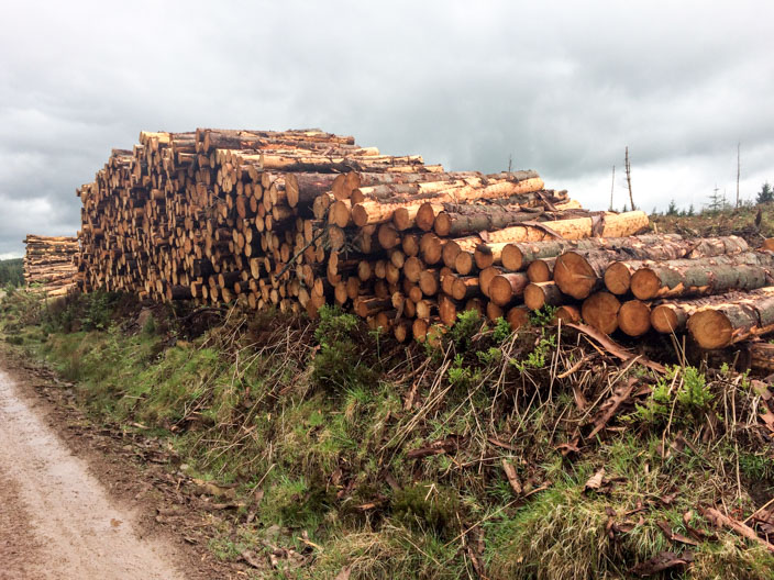 Extensive tree felling allows good views over the Ribble Valley . . .
