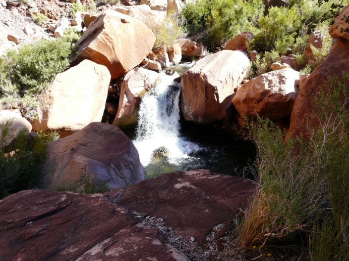A side canyon whose worn rocks indicate the presence of a stream in wet weather . . .
