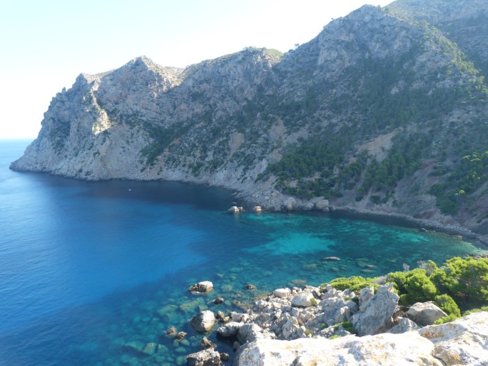 Leaving the hotel we made our way to the old centre of Sant Elm before heading out onto the smugglers’ track. This brought us to the ruined tower, Torre de Cala en Basset built in the 16th century and was part of the network of towers used to control the coast and to protect the town against pirate attacks. A gradual, then steep climb took us on the path to Sa Trapa, the ruins of a Trapist monastery. After taking lunch here we climbed to the highest point of the walk at Coll de ses Animes. The descent was via a landrover track that zig-zagged down the hillside. Turning off through the woods a good path took us back into Sant Elm in time for a swim before dinner. |