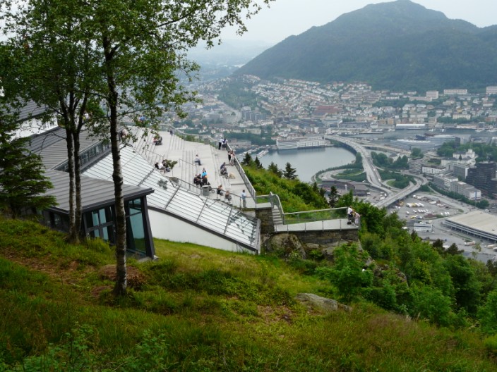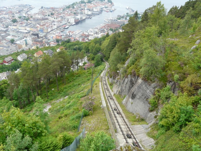 Having returned by the green and yellow routes we decide to walk down to Bergen . . .
