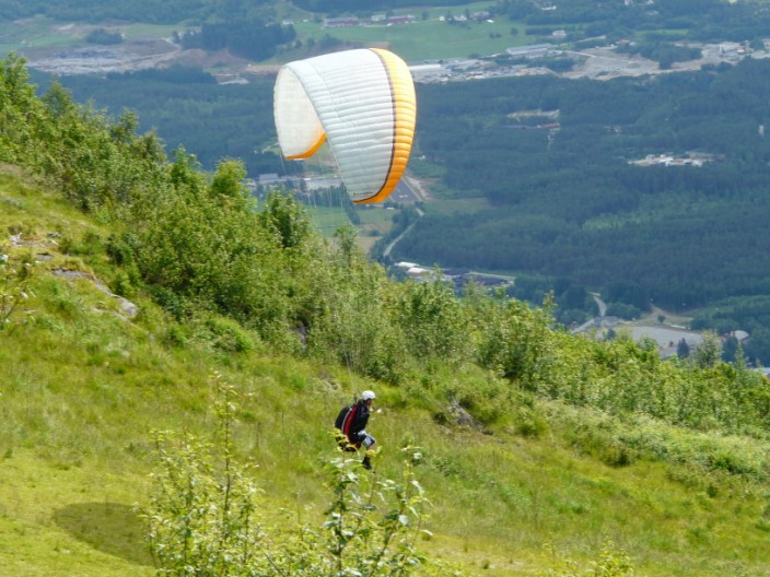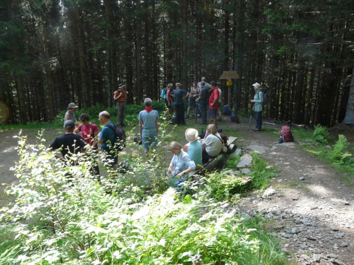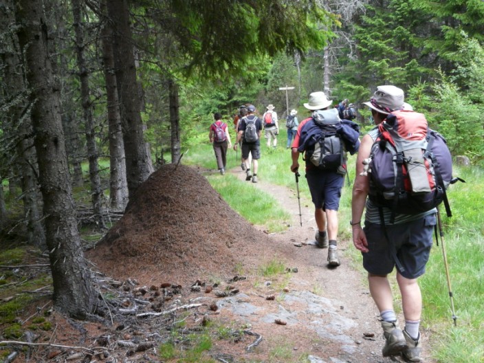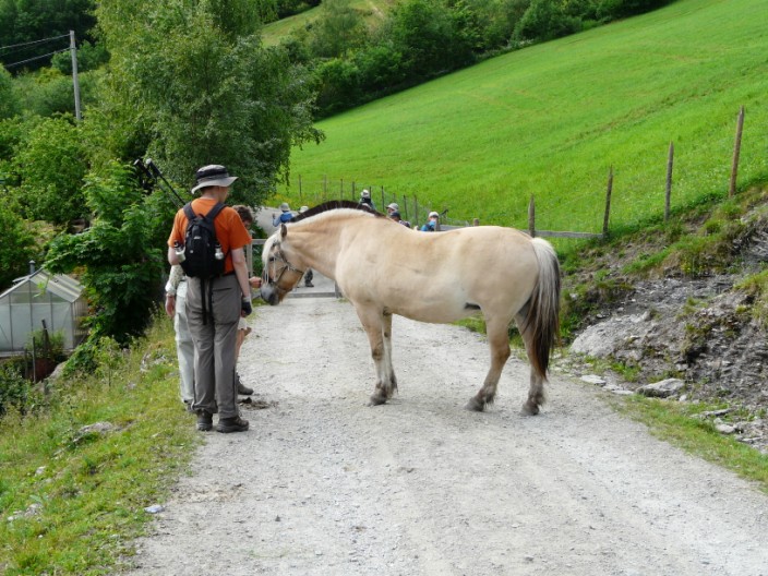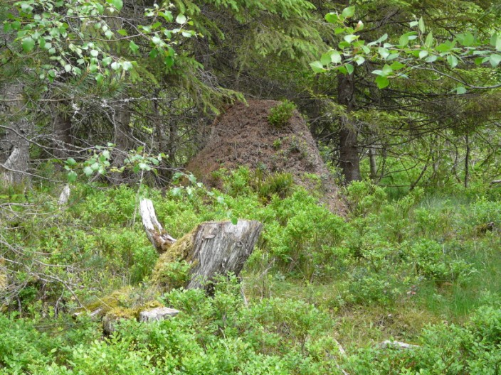 Our walk today took us up to Hangur cable car station (no not by cable car!) from where we could watch some paragliders taking off. We then continued on to the Red Cross Cabin and the Vallberg tarn. The surroundings are an eldorado for skiers in the winter months and Lønahorgi can be seen to the north-east, 1412 metres above sea level. Returning to the main track we eventually found an indistinct route that took us up to Slettafjell with views into more valleys, and a good spot for lunch. Retracing our way to the main path we then headed west towards Kisseldur where summer farming was carried out until the 1960s. Gradually descending through the woodland we passed many ant hills, some of which were about a metre high. It was then an easy walk back into Voss.