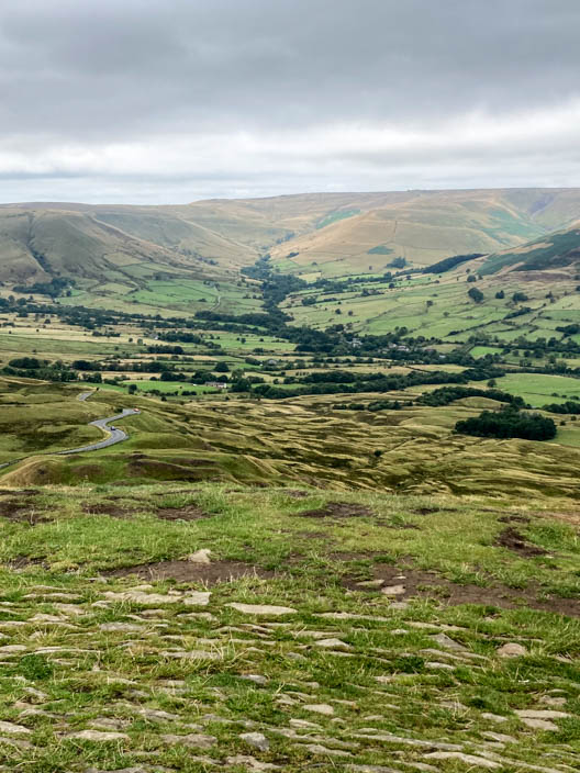 there are good views into the Edale Valley, the starting point of The Pennine Way
